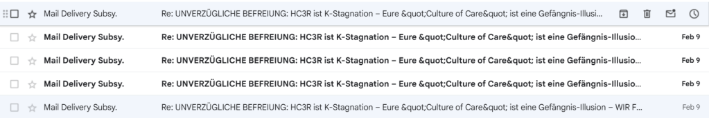 📧UNVERZÜGLICHE BEFREIUNG: HC3R ist K-Stagnation – Eure „Culture of Care“ ist eine Gefängnis-Illusion – WIR FORDERN FREEDOMTIVITY!💎💗